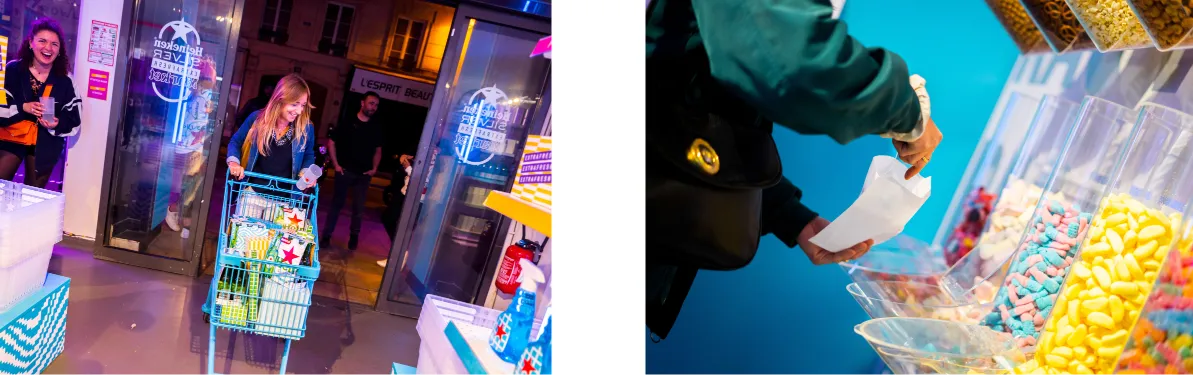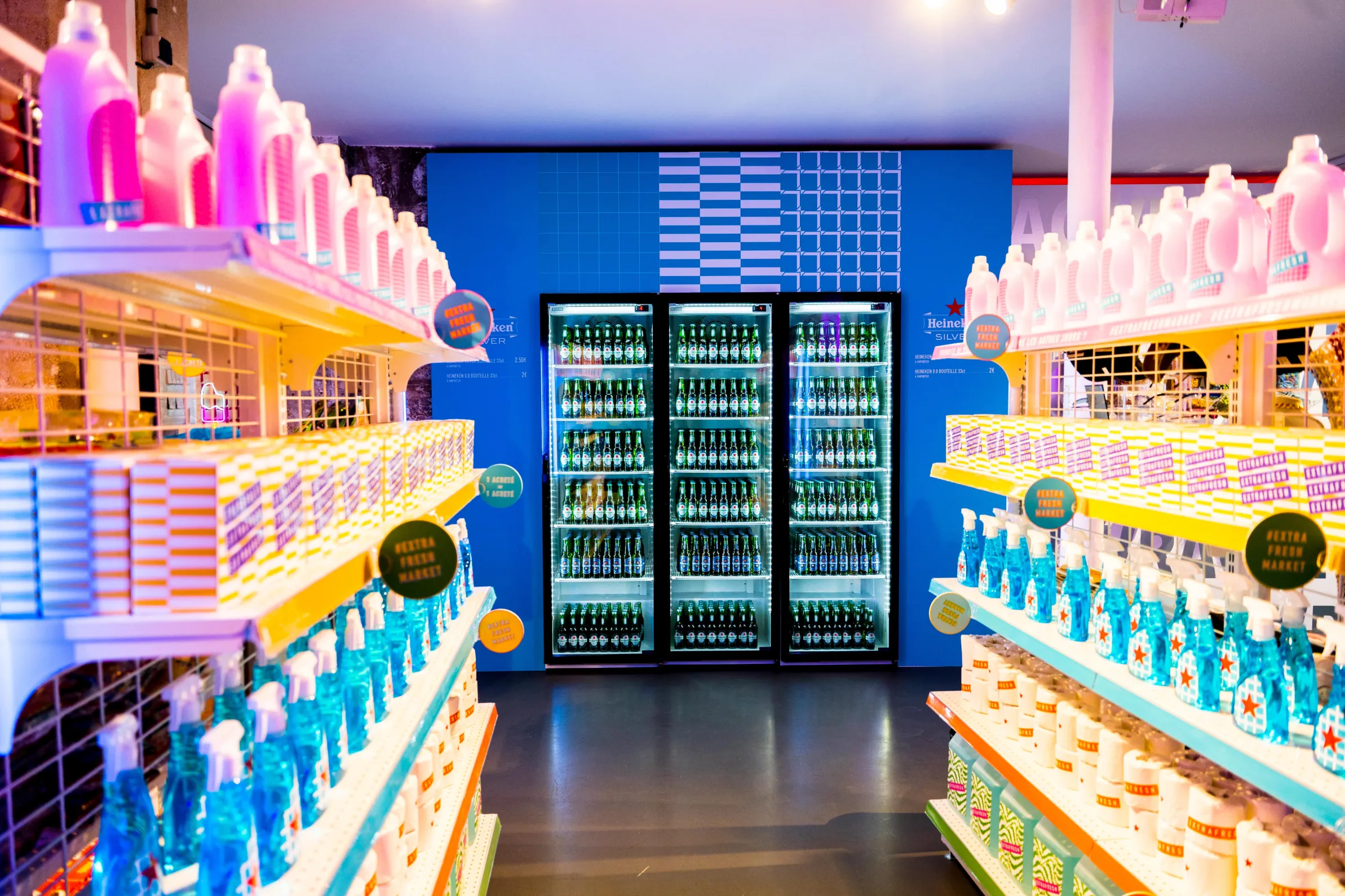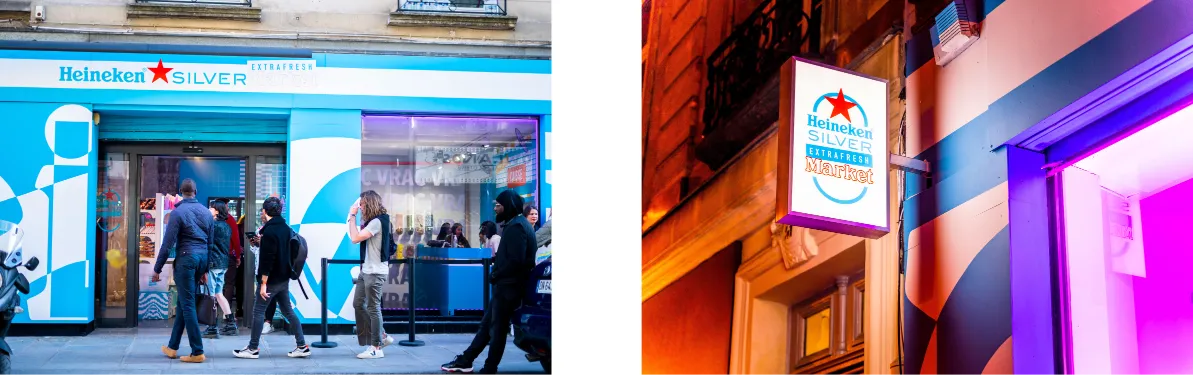 À l’occasion du lancement de Heineken Silver au printemps 2022, le brasseur a souhaité réinventer les codes de la catégorie bière afin de renforcer son attractivité auprès d’un public plus jeune et urbain. Pour incarner cette ambition, Heineken a imaginé une expérience immersive inédite : une supérette éphémère installée pendant deux semaines dans le quartier du Marais, à Paris. Pensé comme un lieu de découverte, cet espace coloré et pop proposait un parcours scénographié composé de quatre espaces cachés, invitant les visiteurs à explorer les différentes facettes de la marque. Au sein de ce dispositif, les participants pouvaient déguster en avant-première Heineken Silver dans un bar “speakeasy”, et découvrir une sélection de produits exotiques en écho à l’univers rafraîchissant de la bière. L’expérience a été enrichie par des collaborations exclusives avec des créatifs issus de la scène contemporaine, parmi lesquels Julien Granel, Yvick, Lorraine Sorlet et la marque Topologie.